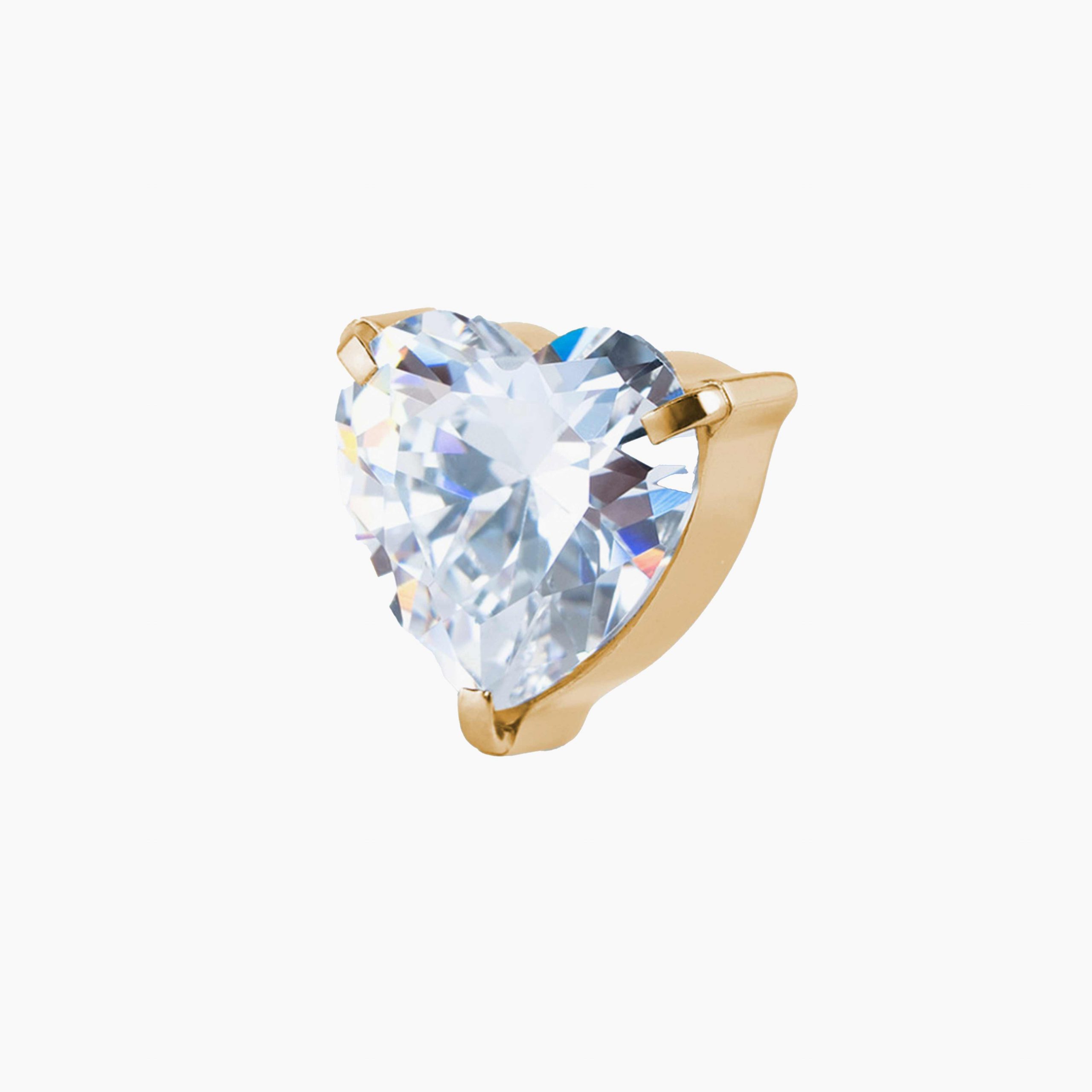 Titanový šperk s vnitřním závitem Heart CZ. Elegantní šperk ve tvaru srdce s precizně broušeným čirým kamenem, který zachytí světlo z každého úhlu. Dokonalý doplněk pro romantický i sofistikovaný styl – v provedení lesklý titan nebo zlacený titan.