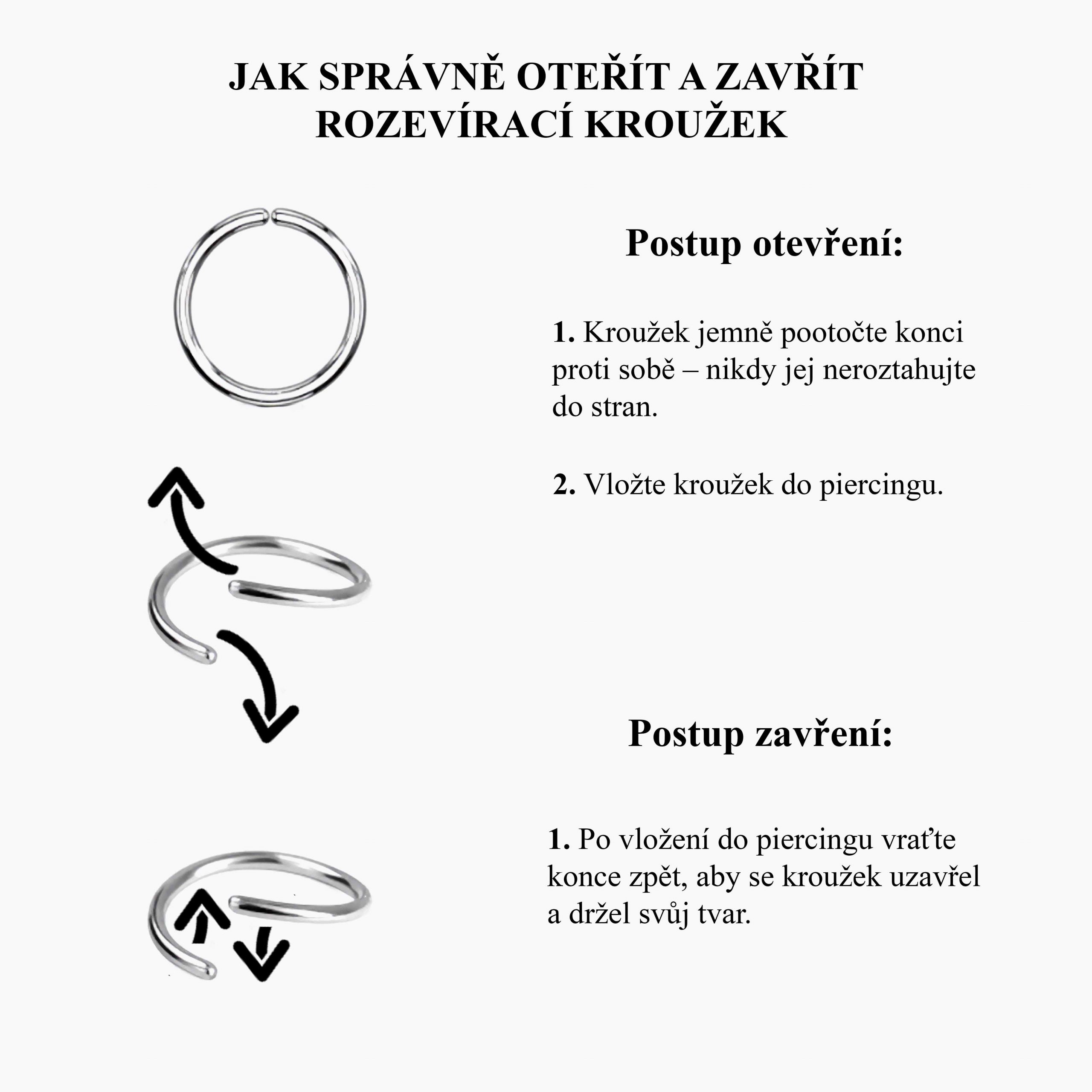 * Průměr kroužku se vybírá podle typu piercingu víz. Size guide Ring
