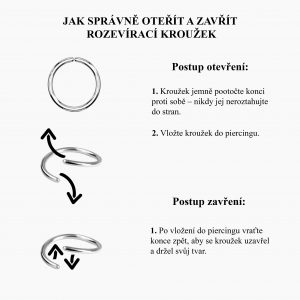 - Po vložení do piercingu vraťte konce zpět, aby se kroužek uzavřel a držel svůj tvar.